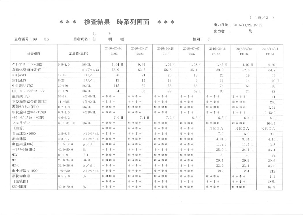 2016年8月18日(クレアチニン((腎臓昨日の悪化)の値が悪くなってきたため