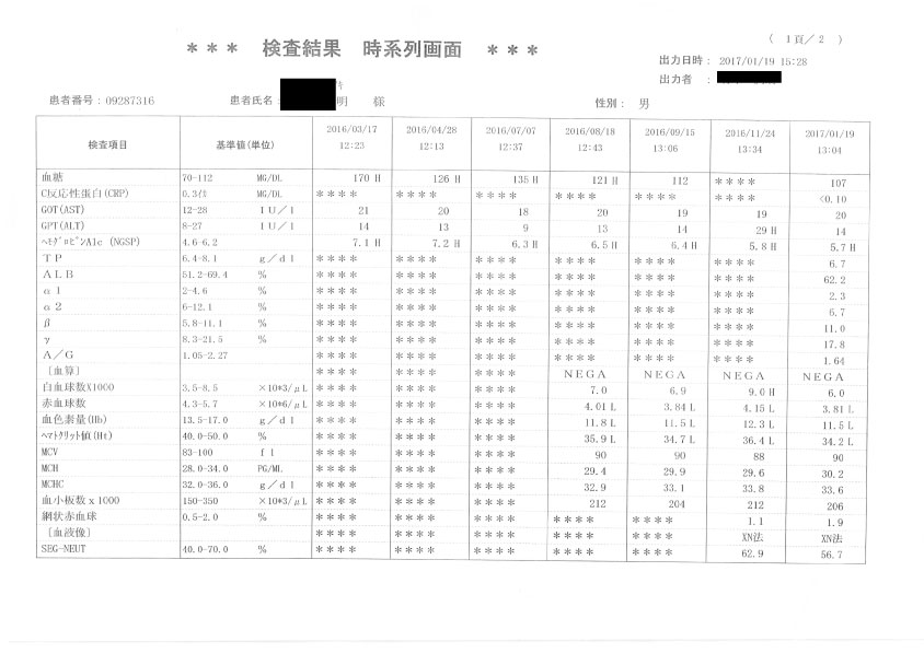 2016年5月〜 富士山の力V150摂取..........HbA1c 7月の検査から低下